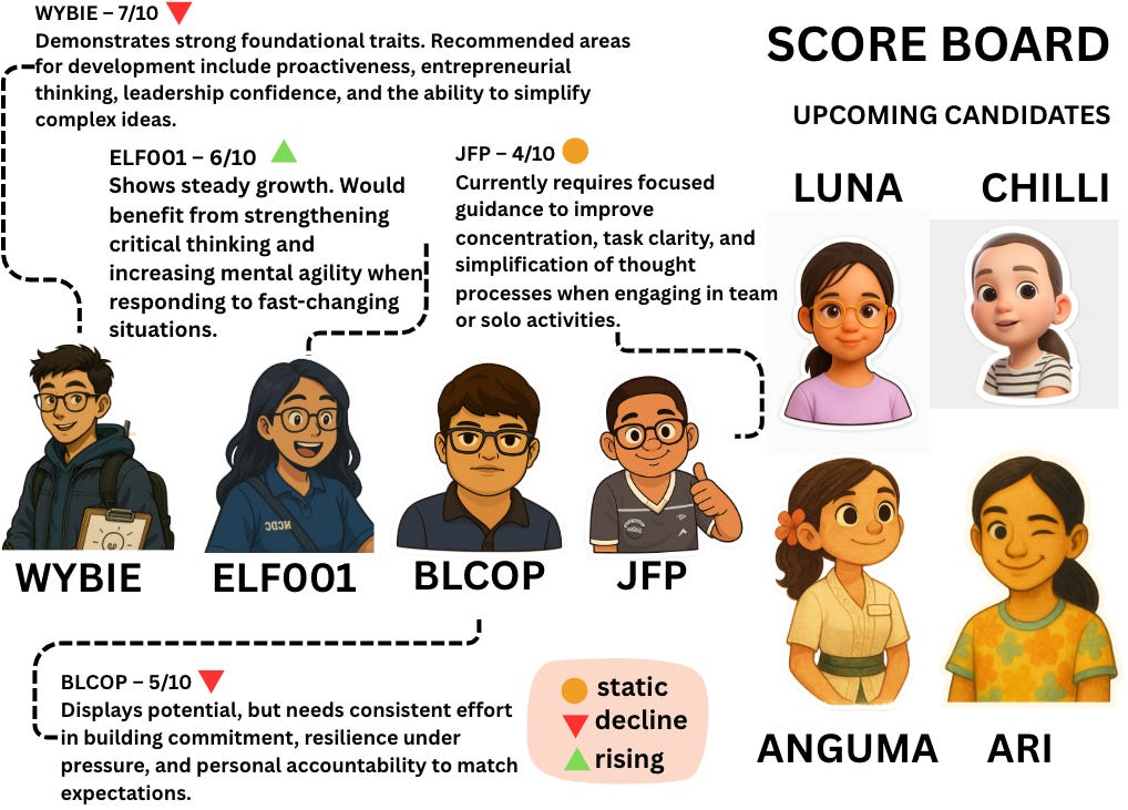 Needed assistance in assigning questions during challenge rounds, indicating room to improve Efficiency in leadership role execution. Luna needs to be more confident in her speech as well. Recommend practicing real-time decision flow under pressure to sustain smooth facilitation.